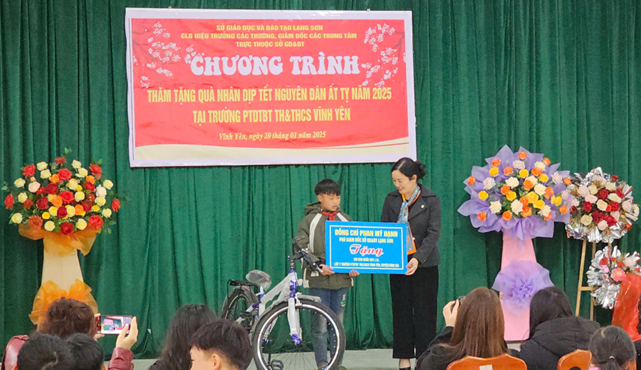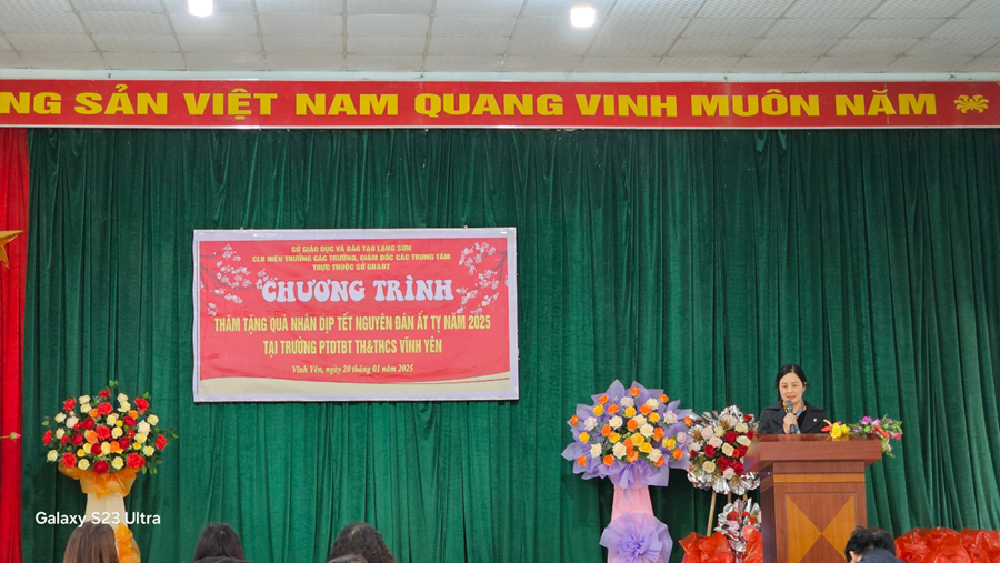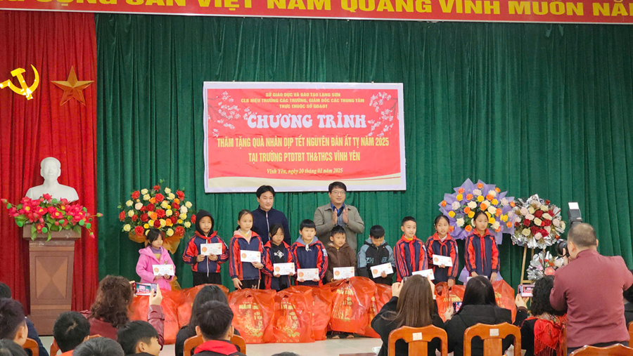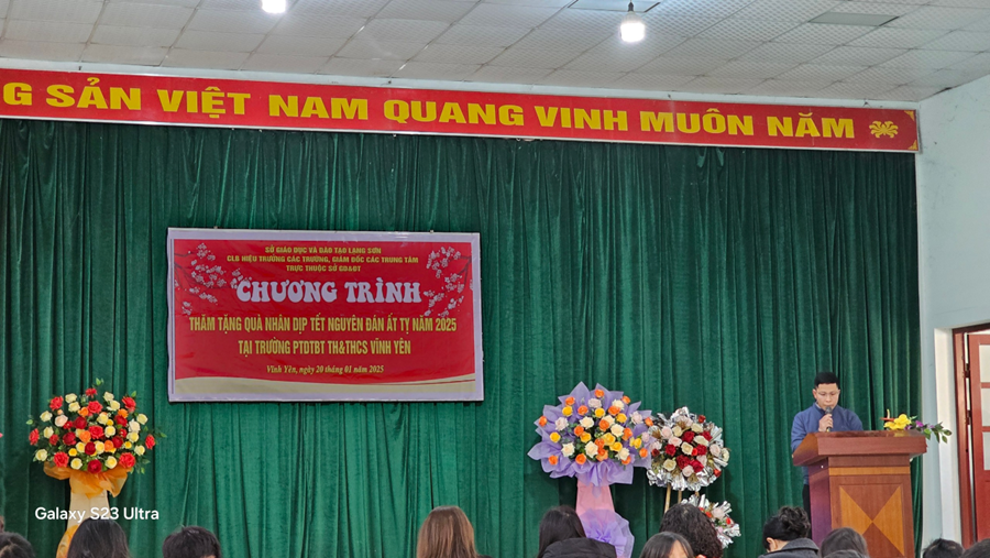 Trong không khí rộn ràng của những ngày cuối năm, ngày 20 tháng 1 năm 2025 Sở Giáo dục và Đào tạo Lạng Sơn phối hợp cùng Câu lạc bộ Hiệu trưởng các trường THPT và Giám đốc các trung tâm trực thuộc đã tổ chức chương trình thăm và tặng quà tại Trường PTDTBT Tiểu học và THCS Vĩnh Yên. Đây là một hoạt động ý nghĩa nhằm chia sẻ yêu thương, mang lại niềm vui và hy vọng cho các em học sinh có hoàn cảnh khó khăn trong dịp Tết cổ truyền Ất Tỵ 2025